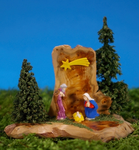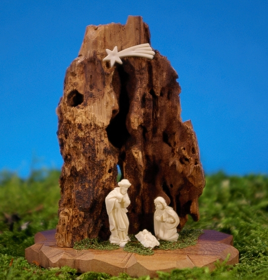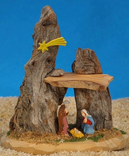Gerade beim Bauen von Miniaturkrippen gibt es unendlich viele Möglichkeiten der Gestaltung. weil man sehr wenig Material braucht und aus jedem kleinen Rest etwas machen kann. Aus kleinsten Wurzel-, Ast- oder Rindenteilen kann eine schöne winzige Minikrippe entstehen. |