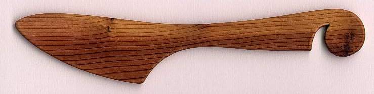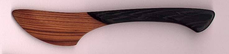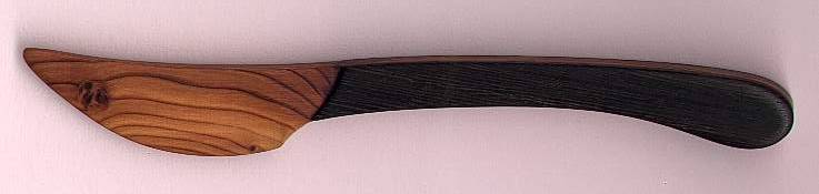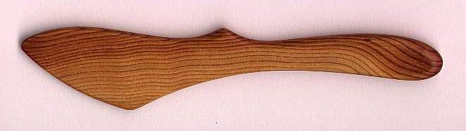 Das Besondere am Smörkniv ist, es wird auch heute noch immer verwendet. Meist für Smör(Butter), aber auch Marmelade oder Honig.Es hat mir immer sehr viel Spaß gemacht selbst Buttermesser zu schnitzen und die Form der Messer zu gestalten. Irgendwann jedoch hatte jeder in meinem Freundeskreis mehrere Messer in der Küchenschublade liegen und leider halten sie sehr lange. So habe ich mich entschlossen die Smörknivar auch zu verkaufen. Keines der Buttermesser ist ganz gleich, da jedes in Handarbeit hergestellt wird, von der Auswahl des Holzes bis zum Schleifen. Die von mir am häufigsten benutzten Hölzer sind die seltene Eibe(Idegran), Wacholder, Kiefer, Akazie, Apfelbaum und Kirsche. Verschiedene dekorative Einlagen und Ausschmückungen fertige ich auch in Palisander, Wenge oder Mooreiche.