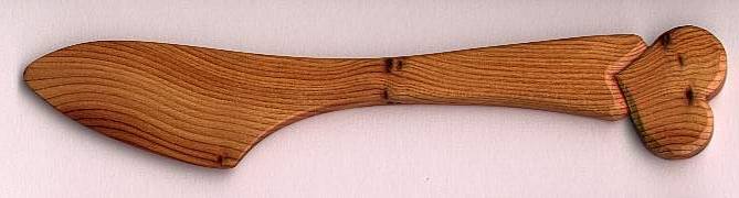 Dies ist jedoch, nicht wie man annehmen könnte ein Messer aus Metall, das wäre sicher nichts besonderes, sondern eines aus Holz. Wie und wann es entstanden ist läßt sich schwer sagen. Man kann nur vermuten, daß in Ermangelung des teuren Metalls die Bauern an den langen Winterabenden solche Buttermesser schnitzten. Wie sie auch Löffel, Schöpflöffel, Mehlschaufeln und Schüsseln aus Holz anfertigten. Die Liste solcher handwerklichen Arbeiten liese sich noch lange fortführen. Die am häufigsten für Smörknivar bearbeiteten